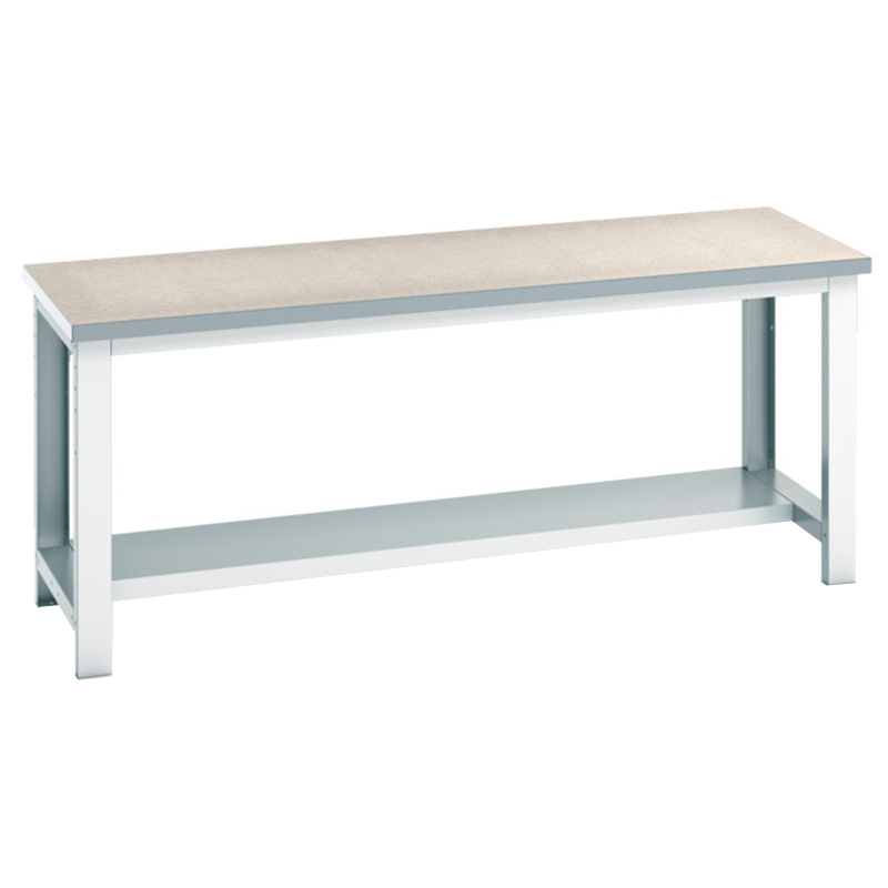 Available in 1500mm or 2000mm lengths and 750mm or 900mm depths, each bench includes a half-depth base shelf for convenient storage without compromising legroom. Choose between durable 40mm Multiplex or Lino worktops to suit your workspace needs. Finished in RAL7035 light grey as standard or RAL7016 anthracite grey as optional, these workbenches integrate seamlessly into any workplace.