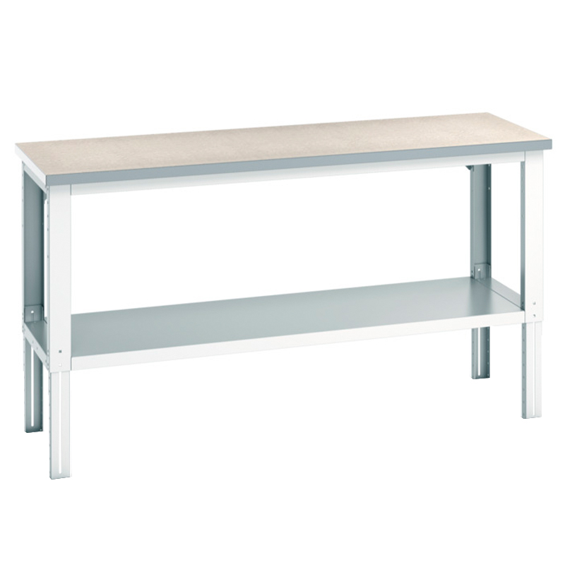 Bott Cubio Basic Workbenches with Full Depth Shelf (adjustable height) are heavy-duty, braced framework benches designed for industrial and professional workspaces.