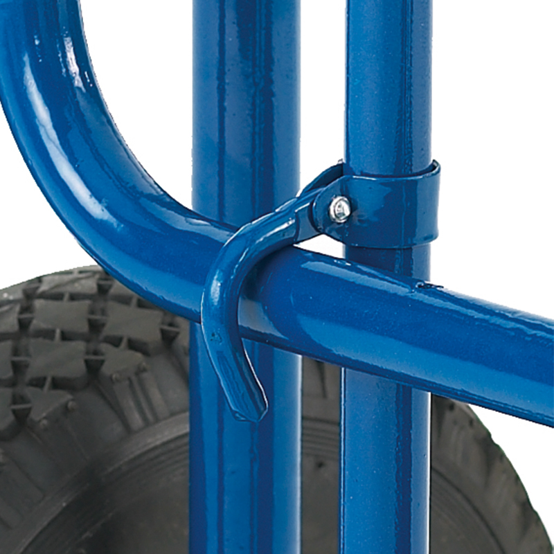 Two way cargo truck that converts from a sack truck to platform truck. Mobile on 250mm pneumatic wheels and 100mm swivel castors.